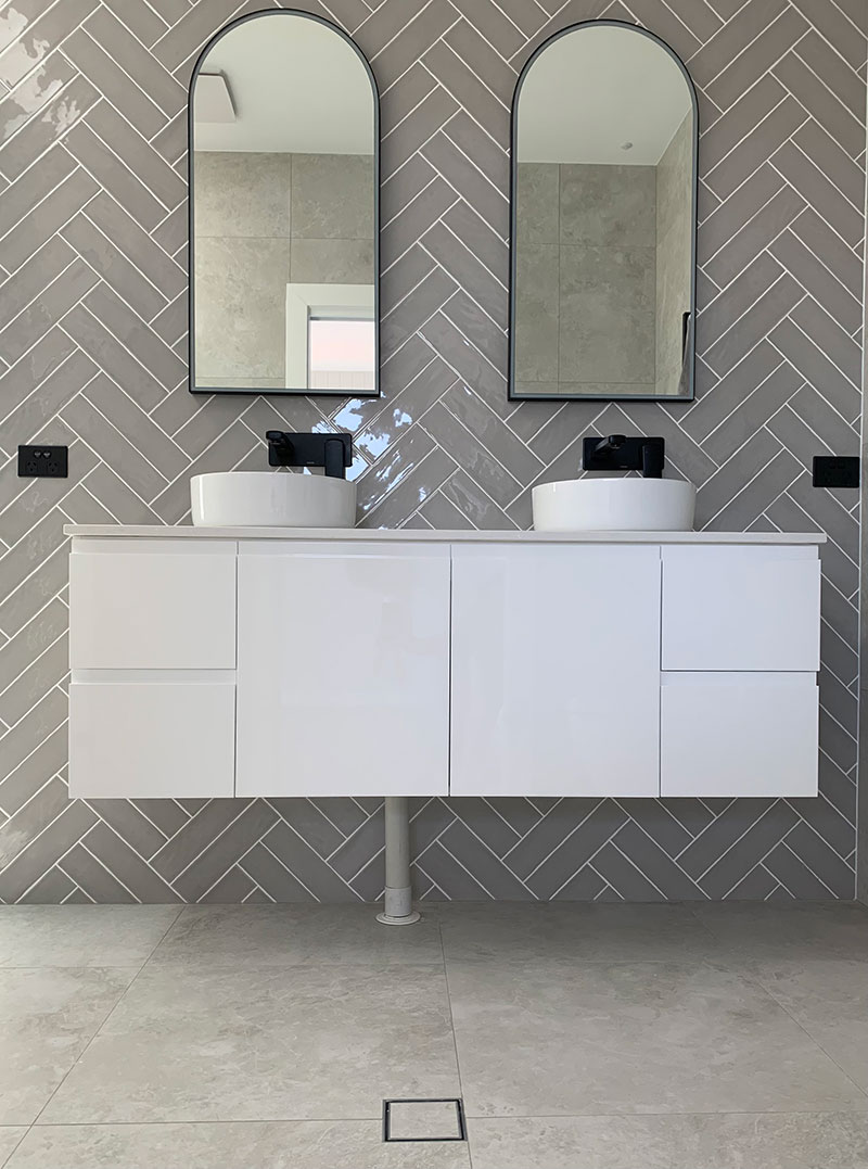 Designed for use with wall hung vanities to disguise the waste pipe where the drainage exits out of the floor. Provides an easy, cost effective and visually appealing solution to cover the waste pipe.